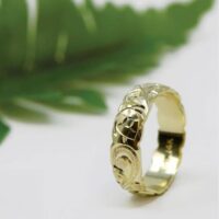 ハワイの豊かで雄大な自然を力強く表現したオリジナルの彫りデザインが施されたリング。ペアリングとしてもオススメ。