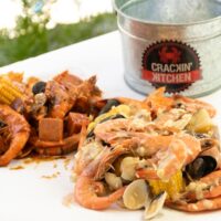 カウアイシュリンプ454g、シュリンプ、アサリ、ムール貝、コーン、ジャガイモ、スパム。ソースを2種類お選びください。