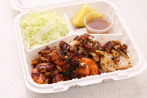 どの味にしようか迷っている人におすすめ!特にスパイシー&オリジナルの組み合わせが人気。ライス付きは$16.95、エビのみは$13.50。