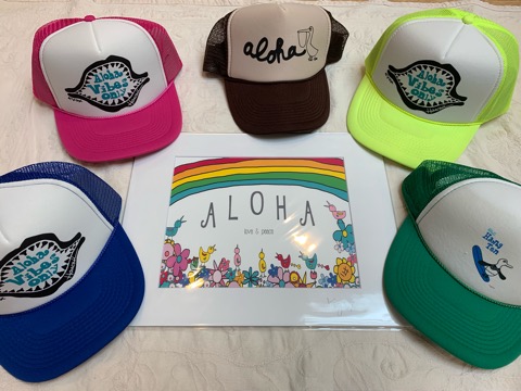 ヒーラーアーティストKyox による、トラッカーcap!!! メンズ・レディースにお揃い大人気(*^▽^*) これからの季節に大活躍、ビーチには最高!!! サイズはフリー、調節可能! ビビットカラーで気分はaloha ╰(*´︶`*)╯♡ DFS Tギャラリアトロリー乗り場向い 345ビル3階 NAIA(╹◡╹)♡