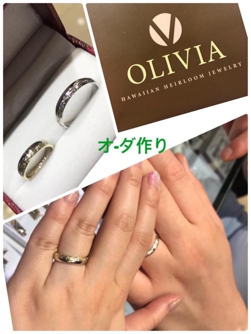 6/25日ハワイで結婚式おめでとうございます❣️Lineからオ-ダ作りオ-ダ今日出来上がった指輪サイズもデザインもOkay~ お母さんがOlivia店お客様なので娘さん結婚指輪まで作って嬉しいですね!