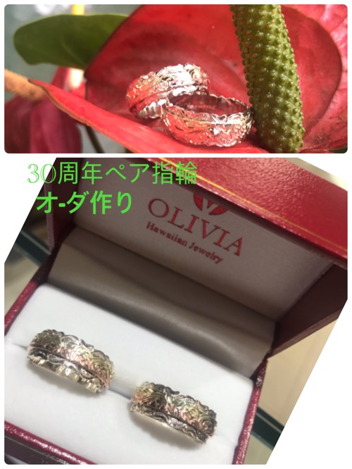 今年29年だと思ってたのに30周年になって毎年いらして記念にオ-ダ作りですが今回は30周年記念にペア指輪メッセージも彫りオ-ダ作りですね❣️Aulaniの方まで配達です!