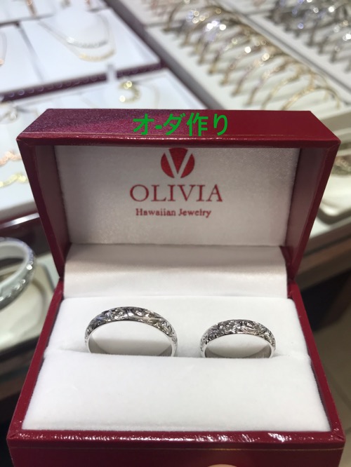 旦那さんハワイ旅行いらして奥さんの指輪サイズ分かっているのでペア指輪オ-ダ作りメッセージデザインも旦那さんからオ-ダ❣️