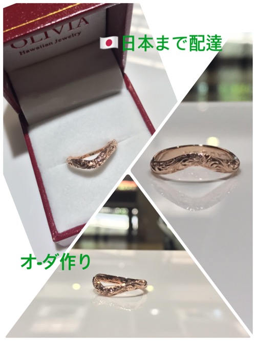 新婚旅行オ-ダ作りピンクゴルド指輪内側にメッセージ彫り結婚指輪と一緒に付けれるように結婚指輪と同じ形Vのように作りましだ❣️