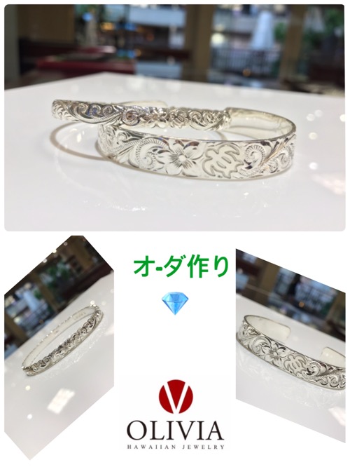 Aloha❣️ハワイ旅行記念にオリジナルハワイアンバングルにお花の中にダイア入れてペアバングル作りですね〜日本まで配達なので楽しみにお待ちしてくださいね〜❣️