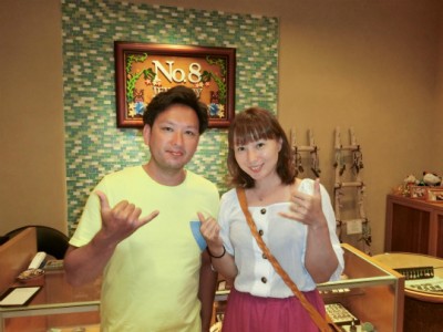 ロイヤルハワイアンホテルにお泊りの、ゆう君&まいみちゃんです新潟県からハワイにバケーションで来られましたゴールドのハワイアンジュエリーをお買い上げです良くお似合いですよまたお二人でご来店くださいね