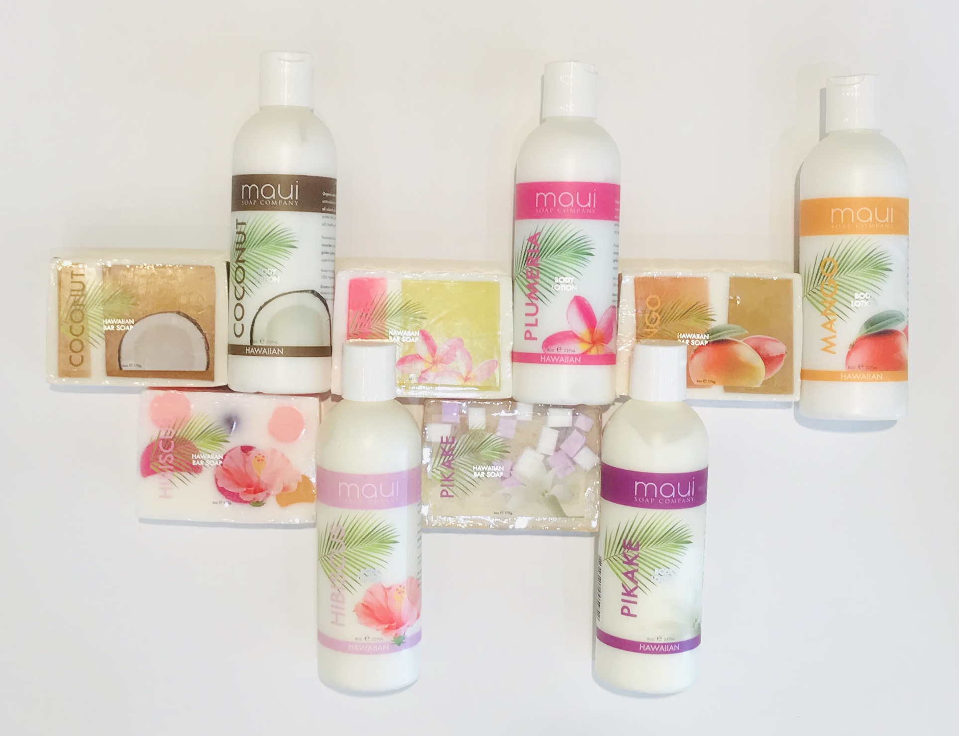 香りはそれぞれ5種類。ピカケ、ハイビスカス、マンゴー、プルメリア、ココナッツです。どれも自然な香りで使うとハワイを思い出す香りです。お風呂上りのボディに毎日癒しをどうぞ。