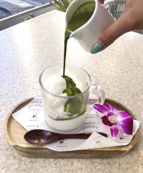 もちろんクラシック派には、コナコーヒーアフォガートもおすすめ。ハワイ島で焙煎したエスプレッソとクリーミーなジェラートの組み合わせです。こちらをはじめ、抹茶を使ったさまざまなメニューも揃っているのでぜひ試してみてくださいね!