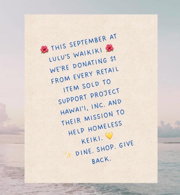 9月いっぱい、ルルズ・ワイキキではホームレスの子どもたちを支援する @ProjectHawaiiInc. の活動を応援しています。