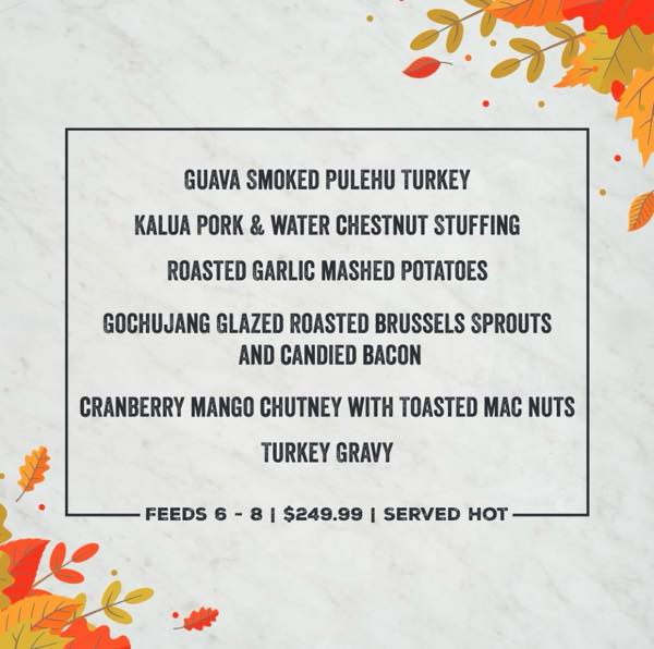メニューには、グアバスモークのプレフターキーやカルアポークとウォーターチェスナッツのスタッフィング、ゴチュジャングレーズのロースト芽キャベツ&キャンディベーコンなど、クラシックメニューをローカルスタイルにアレンジした一皿が並びます。