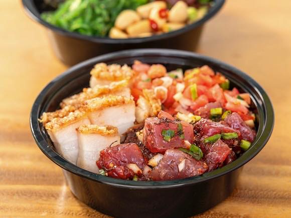 フォートルガーマーケットでは、KAUKAU限定でプレートランチまたはポケボウルを1つ購入すると、同等またはそれ以下の価格の商品が50%オフで購入することができます!カルアポーク、ラウラウ、レチョンなどのプレートランチや各種ポケはどれも人気の商品。クーポンを提示して、お得にお楽しみください!
