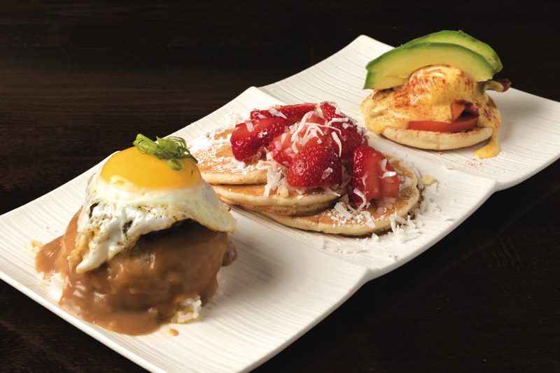 何を食べようか悩む方にはトリプルプレイがおすすめ!和牛使用のミニロコモコ、ミニパンケーキ、ミニエッグベネディクトのハワイで人気な3メニューがミニポーションで盛られたこちらのメニューは、日本人の方にも大人気!色々なものを少しずつ食べたい方はぜひお試しください♪