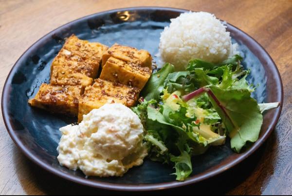 【③サイドメニューを選択】基本はライス+オーガニックサラダ、マカロニサラダ、ライス、フライ、サラダのみも可能。
