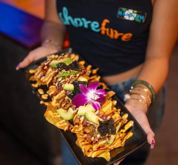 それが、アヒポケがたっぷり乗ったポケナチョス。パリパリのトルティーヤチップスにスパイシーマヨのソースがかかったマグロのポケがたっぷり乗った自慢の一品です。キンキンに冷えたビールとの相性も抜群。ぜひお試しください。