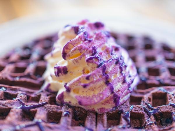 チャートハウスでは、日曜限定のブランチを行っております。中でもおすすめはモチウベワッフル!紫色のお芋を使ったワッフルはもちもち食感が美味しいですよ!時間は10:00〜14:00。ぜひ週末のハワイの朝をチャートハウスでお過ごしください。