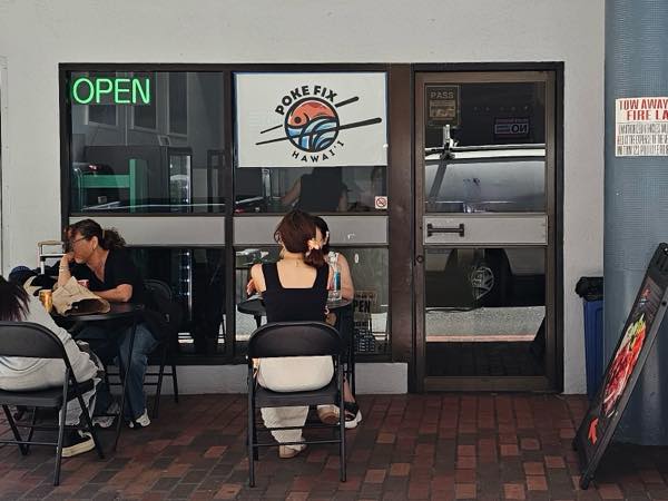 ポケフィックスでは、お店の前に10席ほどのイートスペースをご用意しております。ポケボウルを買ってビーチで食べるもよし、腹ペコで我慢できない〜!という方はお店の前のイートスペースでゆっくりとお楽しみください。1種類のポケが選べるポケボウルは$14、2種類のポケが選べるポケボウルは$18とワイキキではお得な価格設定。皆様のお越しをお待ちいたしております。