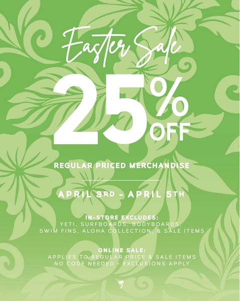 2026年4月3日〜5日までの間、ローカルモーションの店舗とオンラインストアでは25%オフになるイースターセールを開催中!一部商品は除きますが、お得にショッピングができるチャンスをお見逃しなく!