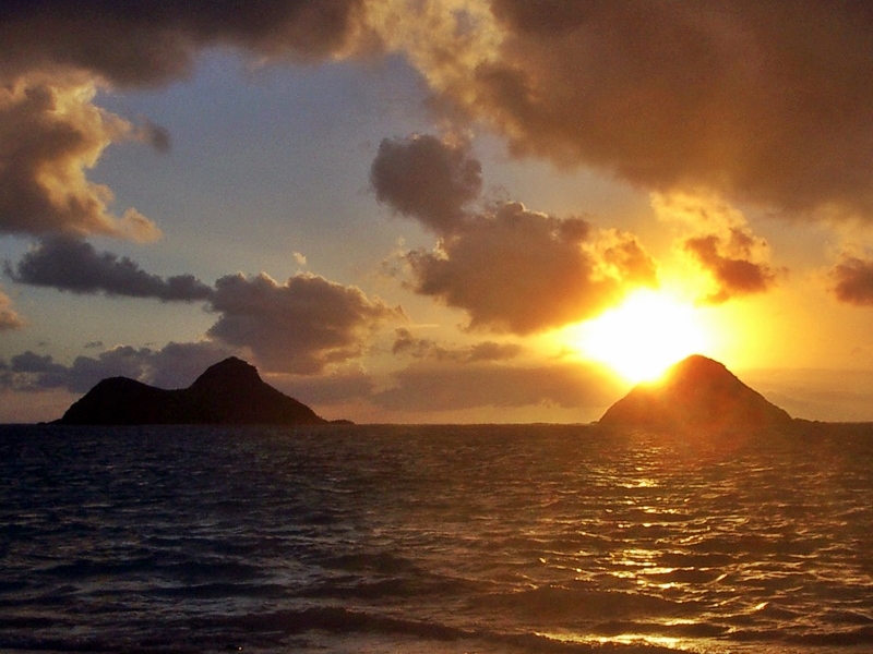 写真はモクルア・アイランズから昇る日の出。早朝は人がほとんどいなく、ラニカイ・ビーチを独り占めできます。