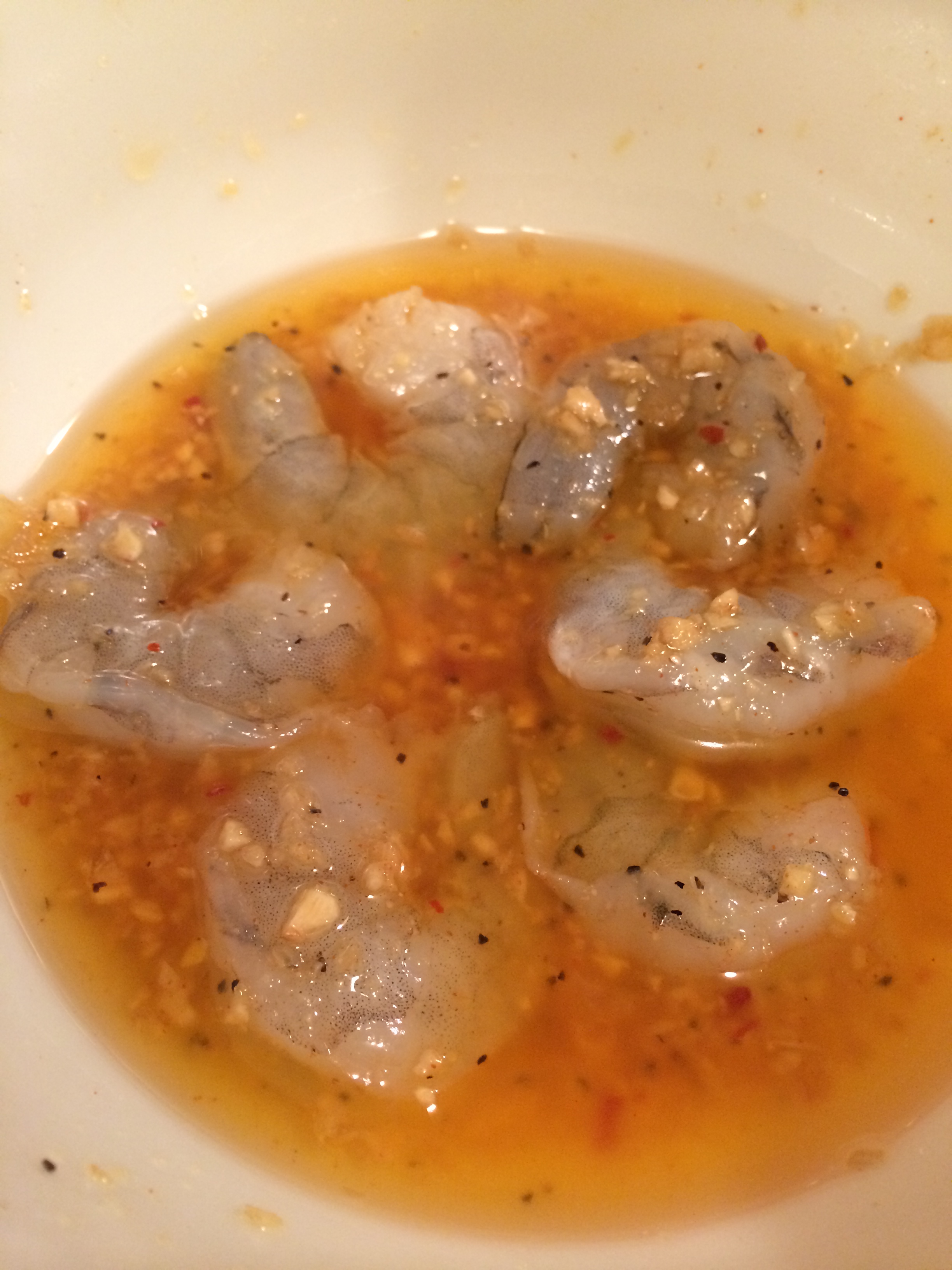 ③エビをガーリックシュリンプソースに15~30分漬け置きします。