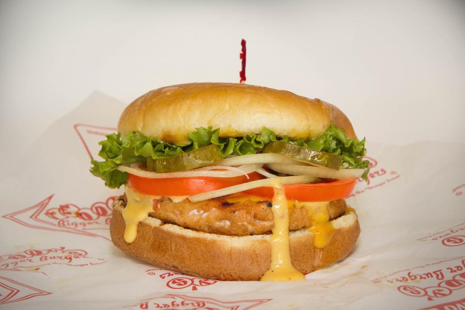 サーモンバーガー!プレイン、照り焼き、ケイジャン、ランチドレッシングから選べます!