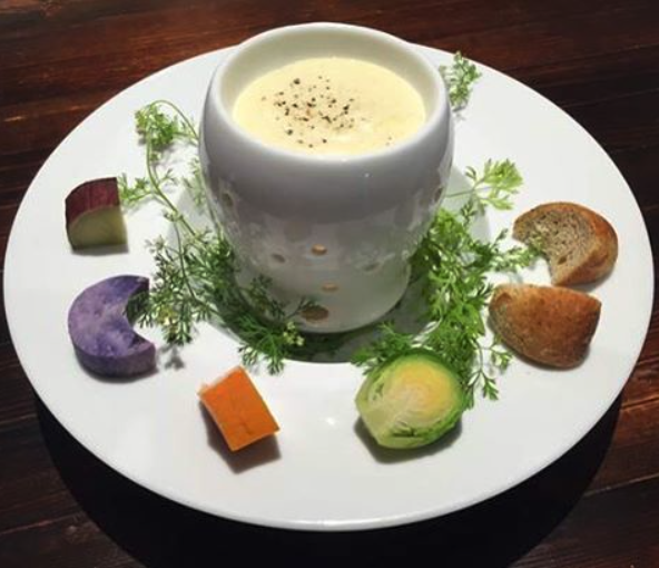 前菜はクリーミーなフォンティーナチーズフォンデュです。