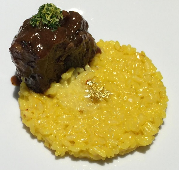 オックステールの煮込み リゾットミラネーゼ添えです。