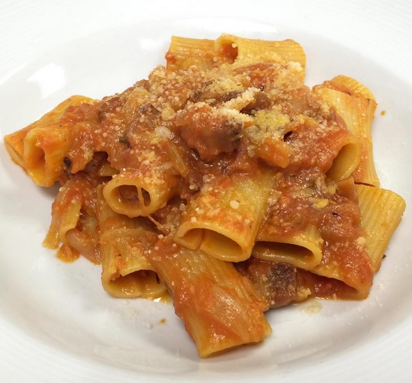 パンチェッタとマウイオニオンのアマトリチャーナ・リガトーニ