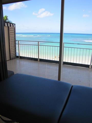 ジュジュべの施術室からは海が見えます!こんな青い海を見ながらリラックス~♪ハワイいちのパワースポットと言われるダイヤモンドヘッド沿いです。