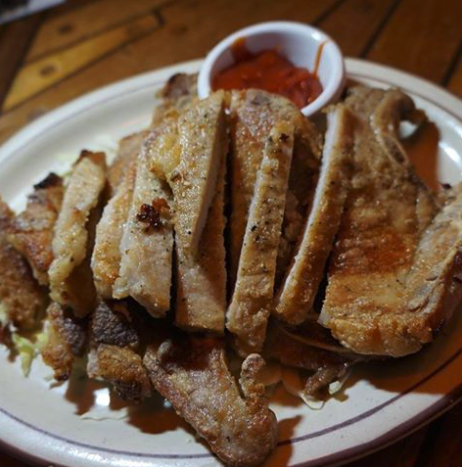 満腹必至のポークチョップです。ロマンチックなサンセットを見ながら、明るい音楽とともにディナーを食べに是非いらしてください。