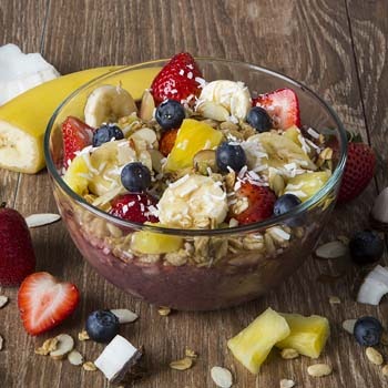 フルーツのスムージーで人気のジャンバですが、ハワイのジャンバジュースにはアサイボウルもあるんです。アサイ、ココナッツ、ストロベリー、ブルーベリー、バナナ、ブルーベリー、パイナップル、オーガニックグラノーラ、ココナッツ、はちみつとボリュームタップリ。
