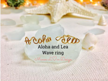 Lが波になったおしゃれかわいい、 Aloha&Leaリング
