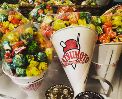 マツモトシェイブアイスではカキ氷以外にも、カラフルポップコーンなどもあります!
