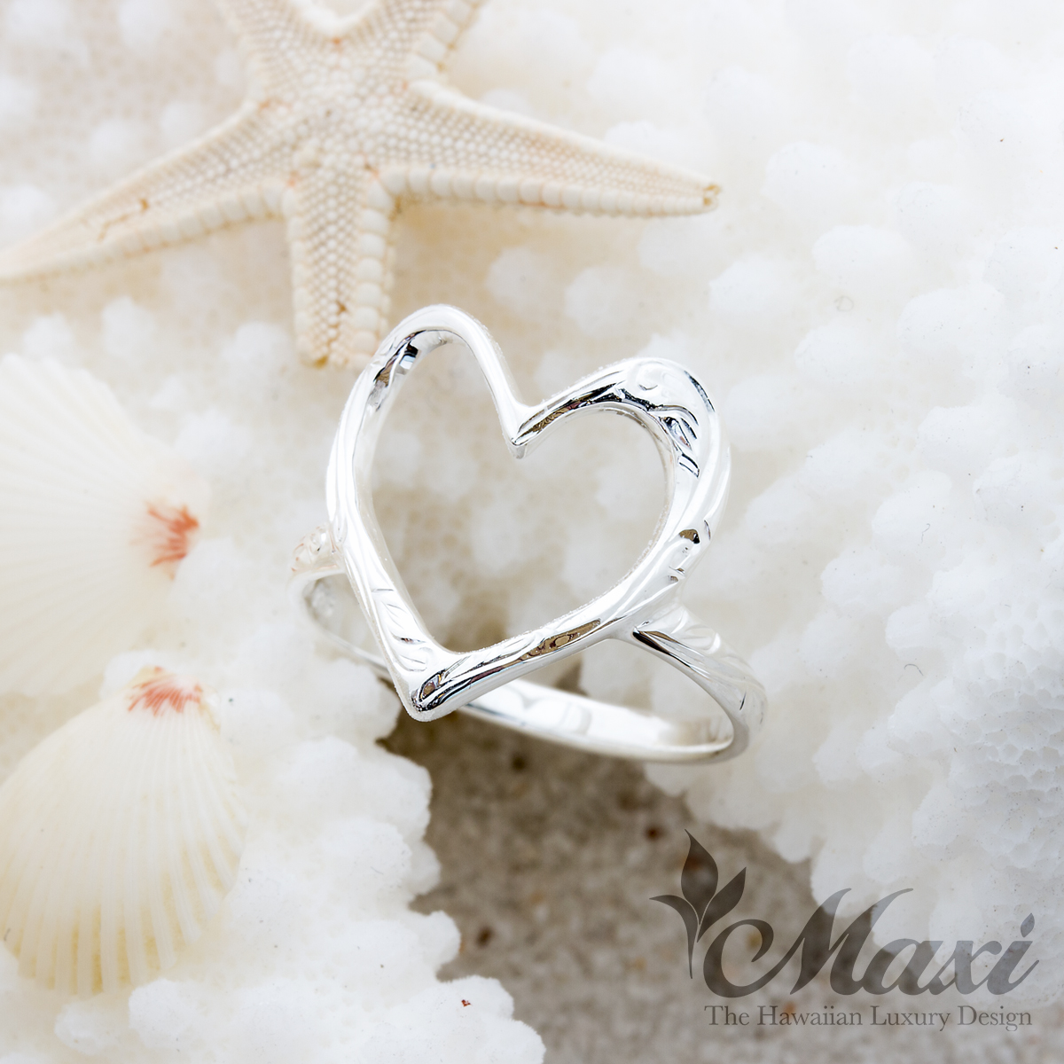 人気のオープンハートシルバーリング!細いラインにもハワイアンデザインの繊細な彫りが入ってます。
