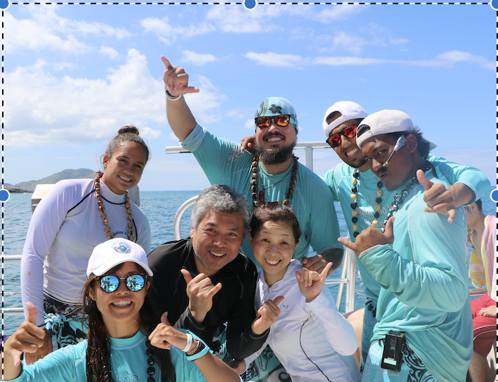 イルカたちと泳いで素敵な笑顔のお客様。