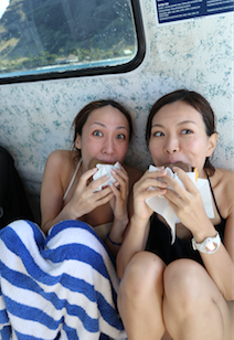 イルカたちと泳いだ後にはお腹もペコペコ。