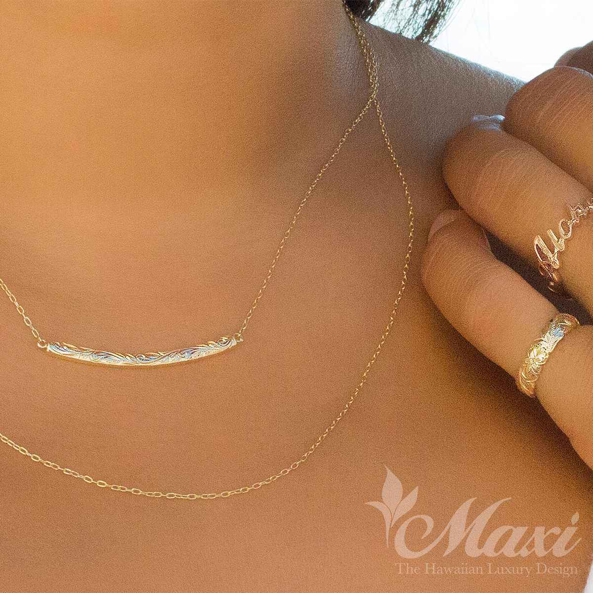 Maxi Hawaii店では、デザイナーHowardがお客様のお好みのデザインや、ご希望のお名前やハワイ語でお造りできるネームリング又はネックレス等、リクエストに応えて最短でご注文の翌日に仕上げてお渡しすることが可能です〜