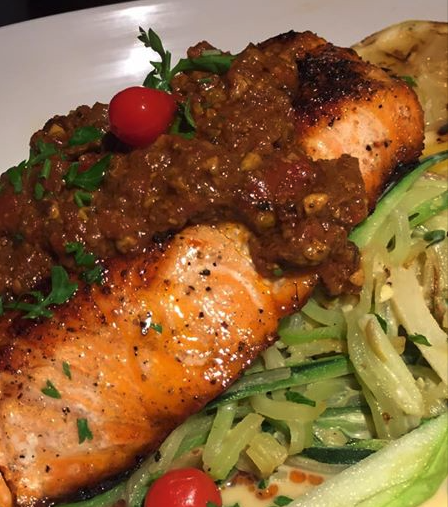 ズッキーニのパスタ、その名もズードルは、サーモンと相性がとってもいいんです。