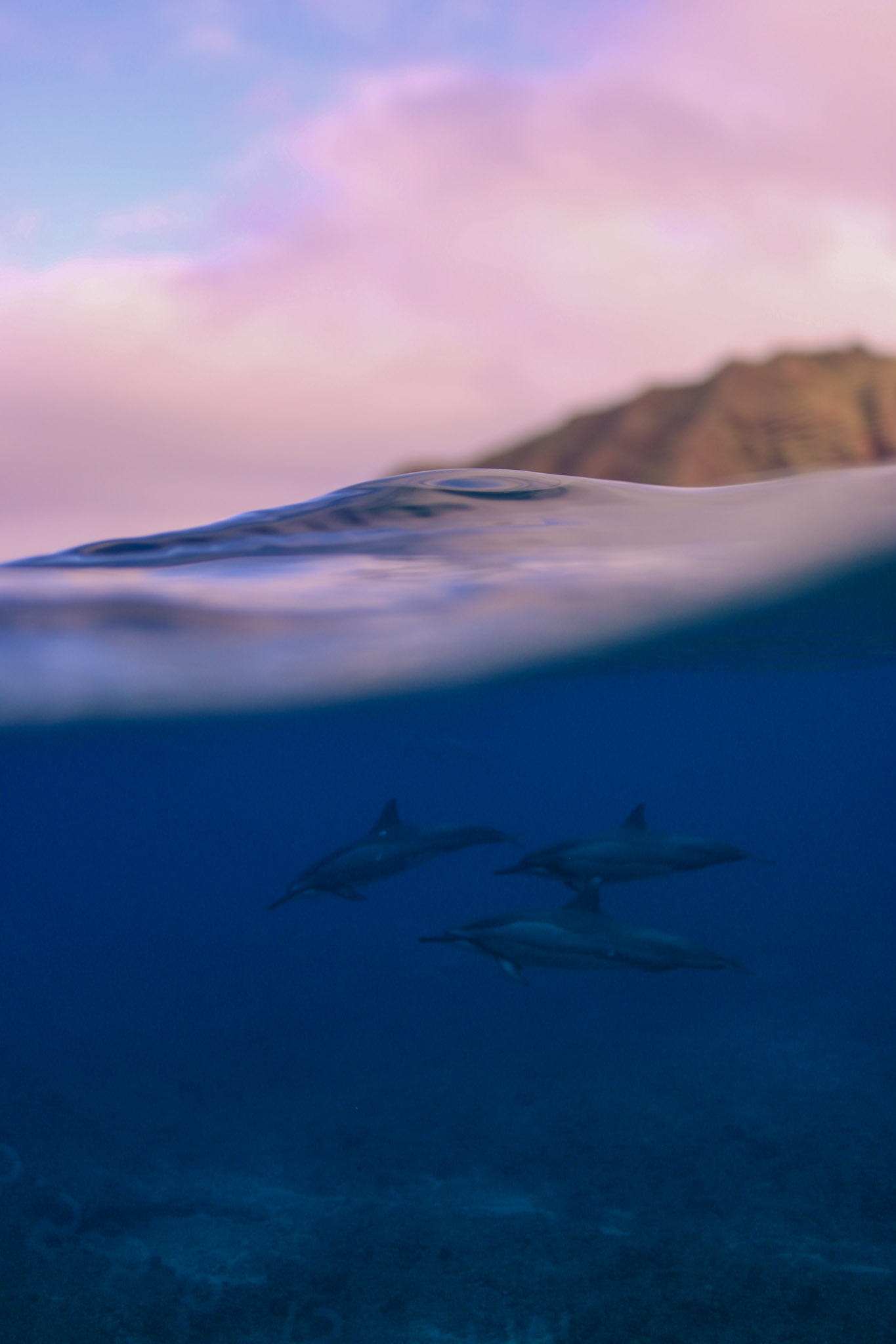 肌寒い朝が続くハワイですが、冬になるとこんな風に朝焼けと優雅に泳ぐ
