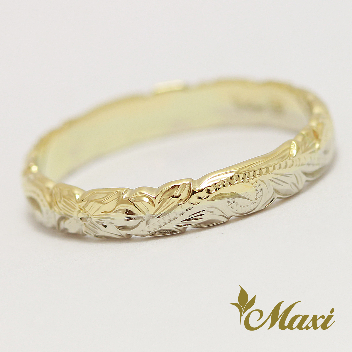 オールドイングリッシュデザインが彫られているツートンリングです。