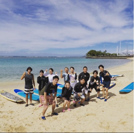 ハワイの青空の下でサーフィン♪