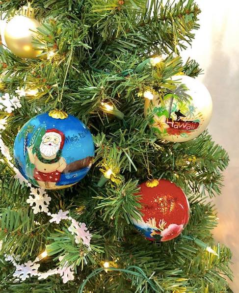 南国ハワイらしくサンタさんは水着にサーフボード、