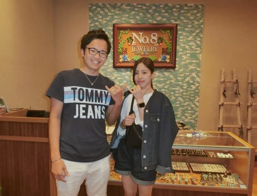 お揃いでオーダーメイドのハワイアンジュエリーをお買い上げです。