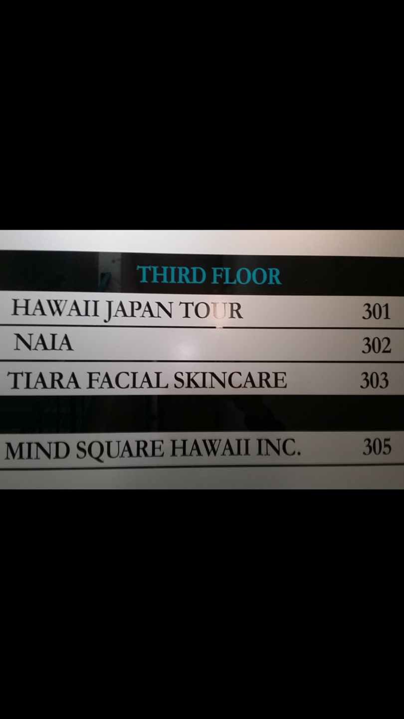 ワイキキ中心Tギャリア、トローリー乗り場から丸見え三階建て345ビル!!! To the sea さんの脇から入るとエレベーター!!! その前に、NAIA 302 、目線の上にはモニターにてnaiaが案内されています↖(^▽^)↗naiaは三階、エレベーターを降りると目の前です。皆様のお気軽のお越しをお待ち申し上げております(∩_∩)