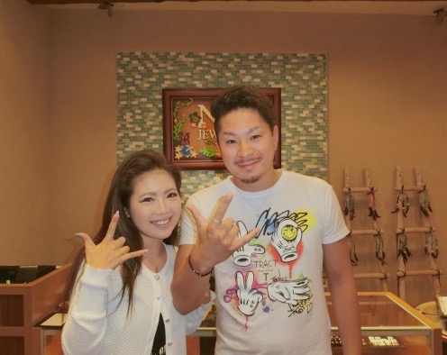 お揃いでオーダーメイドのゴールドのハワイアンジュエリーをお買い上げです