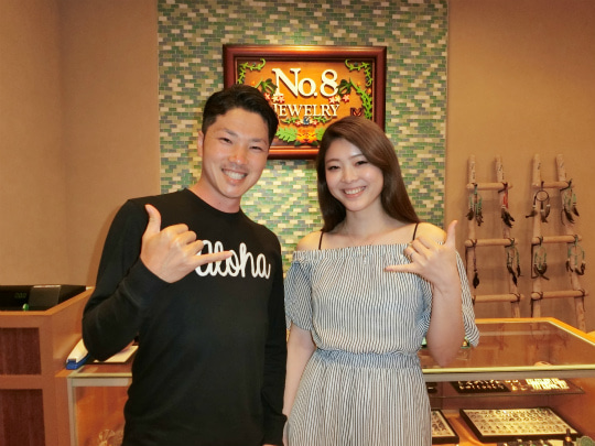 お揃いでオーダーメイドのハワイアンジュエリーをお買い上げです
