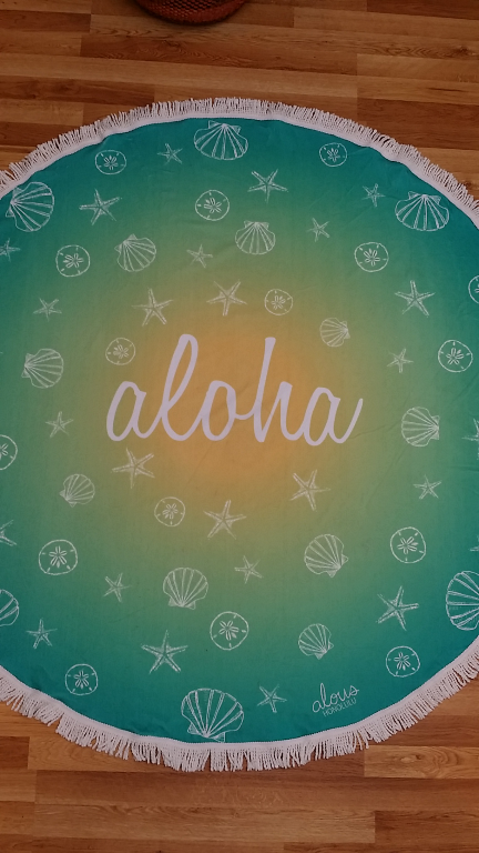 Alous Round Mat!!! ビーチマットはもちろん、ソファーカバー、ブランケットとしてもアイディア次第で、とっても大活躍↖(^▽^)↗!!! マイクロファイバー素材、濡れてもとっても乾きが早い!!!サイズは150cmのベストサイズ≧▽≦y 夏が待てない、一足お先にサマーセール50%OFF $88➡$44!!! どうぞ、お見逃しなく(∩_∩) Tギャラリアトロリー乗り場向かい 345ビル 三階 naia