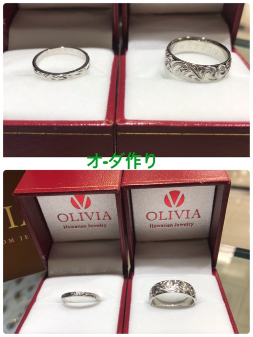 ママと娘さんハワイ旅行記念にWhiteゴルドとプラチナオ-ダ作り内側にメッセージ彫り5.5.2019ハワイ旅行日にちも彫りましだね〜❣️