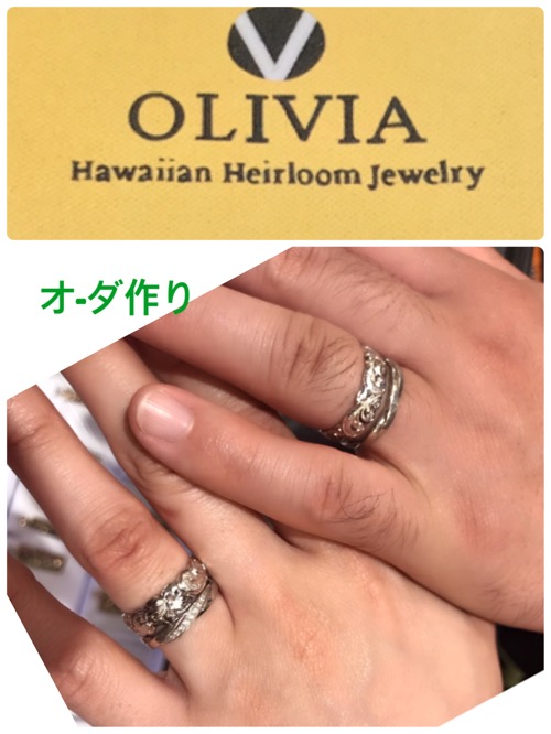 6mmWhiteゴルドペア指輪内側にハワイアン語新婚旅行記念日にち彫りオ-ダ作りですね〜