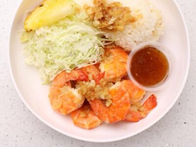 【アラモアナセンター・マカイマーケットフードコート内】ノースショア・カフクで親しまれたガーリックシュリンプのレシピを受け継ぎ、2025年春にオープン!他ではなかなか食べることのできない、大きく、柔らかくてぷりっぷりのエビを使用!